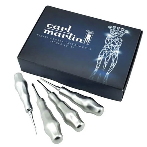 Kit med 4 böjda och raka luxatorer (2 och 4 mm)