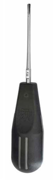 Smidigt instrument med extra kraftig spets för hävling ( elevering) av tand eller rot utan att riskera att arbetsdelen deformeras. Svart ergonomiskt handtag med färgkod. Levereras med Fixus skyddsbehållare. Rak 3,2 mm, färgkod - grå.