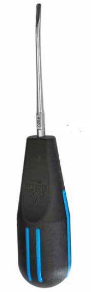Smidigt instrument med extra kraftig spets för hävling ( elevering) av tand eller rot utan att riskera att arbetsdelen deformeras. Svart ergonomiskt handtag med färgkod. Levereras med Fixus skyddsbehållare. Böjd 3,2 mm, färgkod - blå.