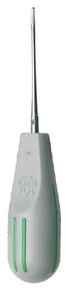 Periotom- ett extraktionsinstrument utformat för luxation av tänder. Instrumentet skär av de periodontala ligamenten och komprimerar det omgivande alveolära benet samt lossar tanden med ett minimum av skada på vävnaden. Grått ergonomiskt handtag med färgkod. Levereras med Fixus skyddsbehållare. Rak 2 mm, färgkod - grön.