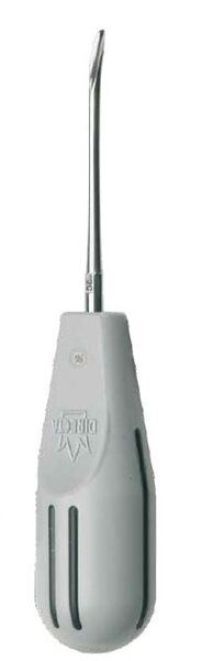 Periotom- ett extraktionsinstrument utformat för luxation av tänder. Instrumentet skär av de periodontala ligamenten och komprimerar det omgivande alveolära benet samt lossar tanden med ett minimum av skada på vävnaden. Grått ergonomiskt handtag med färgkod. Levereras med Fixus skyddsbehållare. Böjd 3 mm, färgkod - svart.