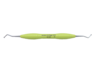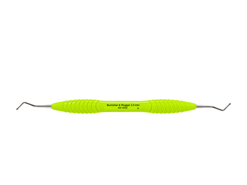 Kulstoppare/punsare med runda arbetsdelar 1,9-2,3 mm av rostfritt stål för att stoppa och forma tandfyllnadsmaterial . Ergonomiskt ljusgrönt (lime) silikonhandtag, Ø 12 mm.