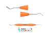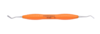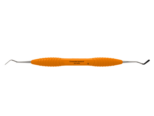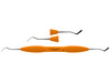 Dubbeländat planinstrument av rostfritt stål för modellering och placering av tandfyllnadsmaterial. Ergonomiskt oranget silikonhandtag, Ø 12 mm.