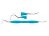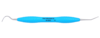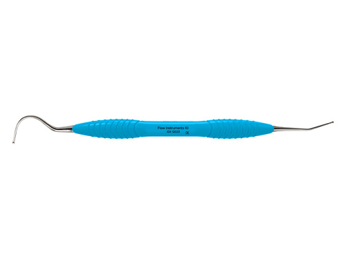 Dubbeländat kondenseringsinstrument av rostfritt stål för placera och forma flytande kompositer. Ergonomiskt blått silikonhandtag Ø 12 mm.