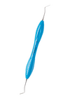 Fin flexibel och smal spatel för kompositmodellering. Lätt att modellera i approximal utrymmen och marginala kanter i matrisen. Med de vinklade spetsarna kommer man åt svåråtkomliga ytor utan att arbetspositionen för handen onödigt försämras. ErgoSense silikonskaft diam. 13,7 mm. Färgkod. Blå.