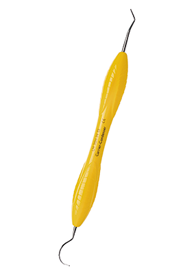 Styvt dubbeländat isoleringsinstrument/stoppare för att överföra bas- eller tunna inlägg till dentinytor. Silikonskaft ErgoSense - 13,7 mm. Färg: Gul.