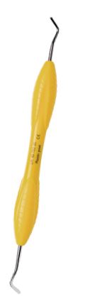 Kompositinstrument för placering, packning och modelering av komposit posteriort. Gult ergonomiskt silikonhandtag ErgoSense diam. 13,7 mm.