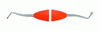 Punsare/kulstoppare med runda arbetsdelar 1,5-2,5 mm för att stoppa och forma tandyllnadsmaterial i kaviteten. Oranget silikonhandtag Xsi = 11,5 mm.