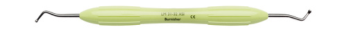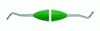 Dubbeländat instrument med päronformade arbetsdelar för att punsa, modellerera och finishera tandfyllningar.
