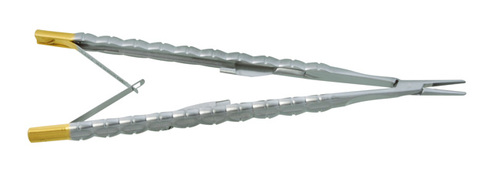 Castroviejo, böjd 13cm. Med TC-beläggning på näbbarna och guldbeläggning på handtag.