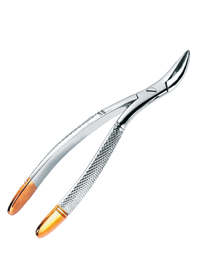 Rottång av rostfritt stål och diamantbeläggning i arbetsdelen, för överkäken. Behändig tång för åtkomst i problemlägen.