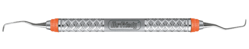 Dubbeländad. Vinklad för att nå de mesiala ytorna på de bakre tänderna. Greppvänligt EverEdge-skaft (easy-grip).