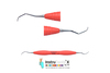 Dubbeländad universalcurette av rostfritt stål med två skärande eggar samt rund spets som används både subgingivalt och supraginigvalt. För den posteriora regionen.
