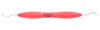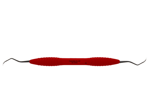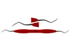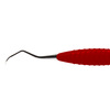 Dubbeländad universalcurette av rostfritt stål som används supragingivalt och subgingivalt. För incisiver, caniner och premolarer. Bladet är lätt böjt med en kort nedre hals. Ergonomiskt rött silikonhandtag, Ø 12 mm.