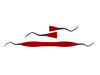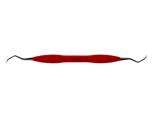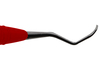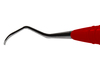 Dubbeländad universalcurette som används supragingivalt och subgingivalt. För incisiver, caniner och premolarer. Bladet är lätt böjt med en kort nedre hals. Ergonomiskt rött silikonhandtag, Ø 12 mm.