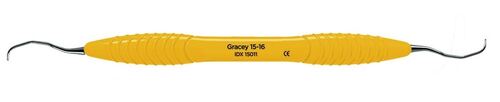 Curette för avlägsnande av djup subgingival tandsten och finishering av subgingivala rotytor på mesialytor hos molarer, mer vinklad i halsen än Gracey 11-12. Skaftet hålls då mer horisontalt vilket underlättar arbetet bl.a. om patienten inte kan öppna munnen tillräckligt. Ergonomiskt gult silikonhandtag, Ø 12 mm.