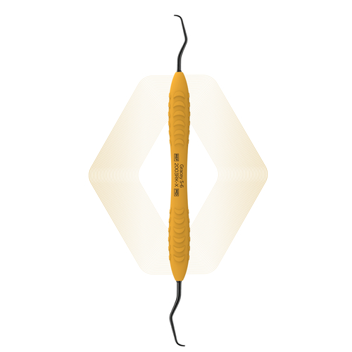 Dubbeländad slipfri finisheringscurette med svarta belagda arbetsdelar och ergonomiskt silikongrepp.