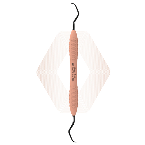 Dubbeländad slipfri finisheringscurette med svarta belagda arbetsdelar och ergonomiskt silikongrepp.
