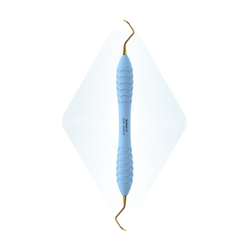 Dubbeländad slipfri universalcurette med belagda guldfärgade arbetsdelar