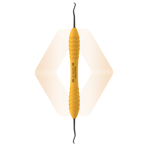 Dubbeländad slipfri sickel/scaler med belagda svarta arbetsdelar