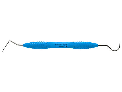 Dubbeländad undersöknings- och fickmätningssond med kula av rostfritt stål och gradering 2-4-6-8-10-12 mm. Ergonomiskt blått silikonhandtag, Ø 12 mm.