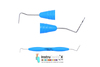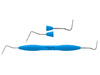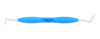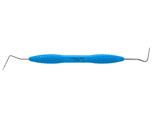 Dubbeländad rak undersökningssond och WHO fickmätningssond med kula av rostfritt stål och gradering 3,5-5,5-8,5-11,5 mm. Ergonomiskt blått silikonhandtag, Ø 12 mm.