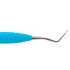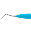 Dubbeländad böjd scaler för att rengöra furkationsytor och inre ytor, konkava ytor och skåror. Även lämplig för rengöring av skåror och approximala konkaviteter i premolarer och incisiver. Ergonomiskt blått silikonhandtag, Ø 12 mm.