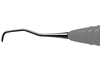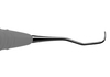 Dubbeländad finisheringscurette av för avlägsnande av djup subgingival tandsten och finishering av subgingivala rotytor på incisiver och premolarer. Ergonomiskt grått silikonhandtag, Ø 12 mm.