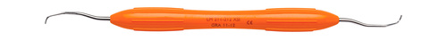 Dubbeländad finisheringscurette för avlägsnande av djup subgingival tandsten och finishering av subgingivala rotytor på mesialytor hos premolarer och molarer.