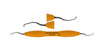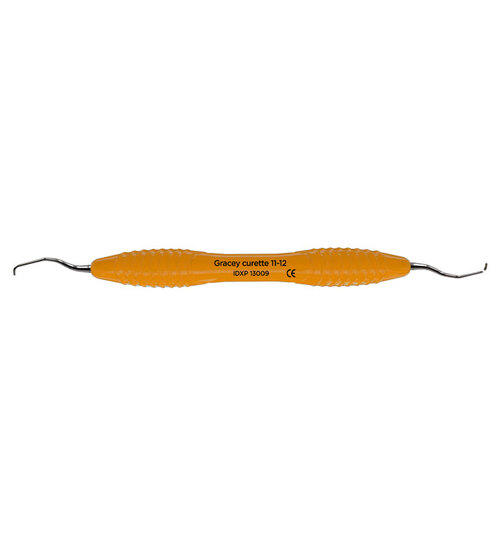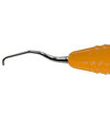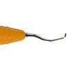 Dubbeländad finisheringscurette av rostfritt stål för avlägsnande av djup subgingival tandsten och finishering av subgingivala rotytor på mesialytor hos molarer. Ergonomiskt oranget silikonhandtag, Ø 13,5 mm.