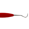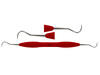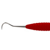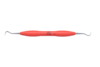 Dubbeländad sickel/scaler av rostfritt stål för att avlägsna supragingival tandsten approximalt i hela bettet. Har en tunn arbetsdel lätt böjd i sidled. Ergonomiskt rött silikonhandtag, Ø 12 mm.