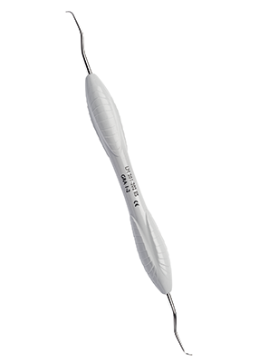 Dubbeländad finisheringscurette för avlägsnande av djup subgingival tandsten och finishering av subgingivala rotytor på incisiver och premolarer.