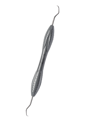 Dubbeländad finisheringscurette för avlägsnande av djup subgingival tandsten och finishering av subgingivala rotytor på incisiver och premolarer.