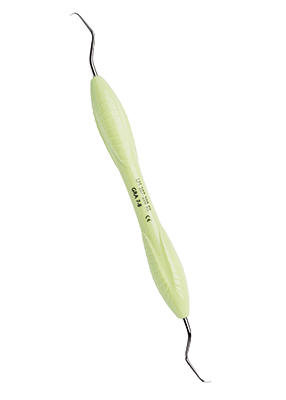 Dubbeländad finisheringscurette för avlägsnande av djup subgingival tandsten och finishering av subgingivala rotytor på premolarer och molarer.