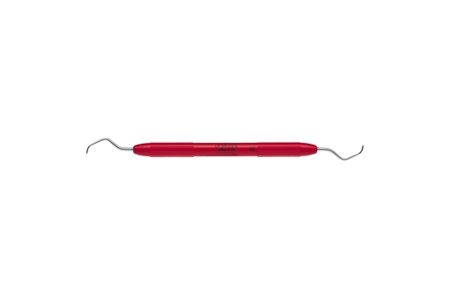 Dubbeländad finisheringscurette för avlägsnande av djup subgingival tandsten och finishering av subgingivala rotytor på molarer.