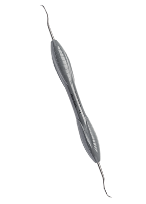 Sickel med gracil arbetsdel och förängd hals för avlägsnande av supragingival tandsten,