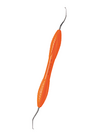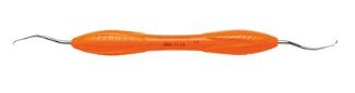 Dubbeländad finisheringscurette för avlägsnande av djup subgingival tandsten och finishering av subgingivala rotytor på mesialytor hos premolarer och molarer.