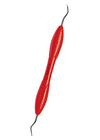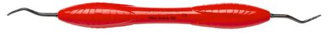 Dubbeländad gracil minisickel med svagt böjda arbetsdelar för avlägsnande av supragingival tandsten.