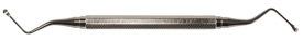 Kirurgisk skedformad curett. För avlägsnande av överbliven mjukvävnad, skrapning samt för att rugga upp efter extraktion. Dubbeländad, 2,8 mm.