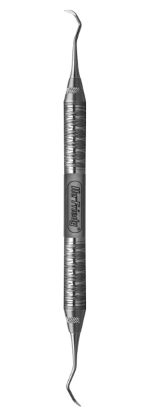 Dubbelsidig McCall-skalpell designad för borttagning av supragingival tandsten.