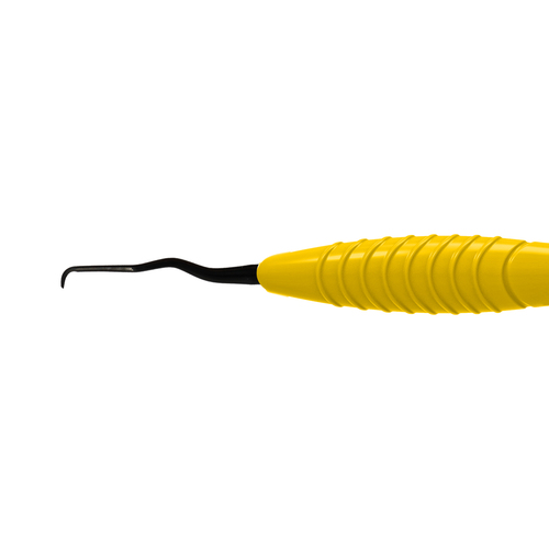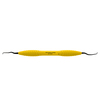 Dubbeländat depurationstinstrument som är en kombination av universalcurette och finisheringscurette Gracey Mini 13-14 samt Gracey Mini 11-12 i ett och samma instrument. För att ta bort subgingival och supragingivalt tandsten i molar och premolar området speciellt för trånga och djupa fickor. Ergonomiskt gult silikonhandtag, Ø 12 mm.