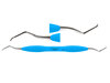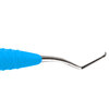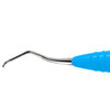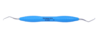 Dubbeländad finisheringscurette av rostfritt stål för avlägsnande av djup subgingival tandsten och finishering av subgingivala rotytor på distalytor hos molarer. Har förlängd nedre hals och mindre arbetsdel än Gracey 13-14. Ergonomiskt blått silikonhandtag, Ø 12 mm.