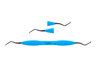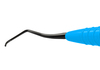 Dubbeländad finisheringscurette av rostfritt stål för avlägsnande av djup subgingival tandsten och finishering av subgingivala rotytor på distalytor hos molarer. Har förlängd nedre hals och mindre arbetsdel än Gracey 13-14. Ergonomiskt blått silikonhandtag, Ø 12 mm.