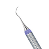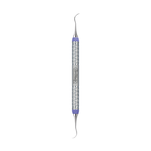 Posterior scaler med koniskt utformade dubbla skäreggar. Dubbeländat instrument med greppvänligt handtag (easy-grip).