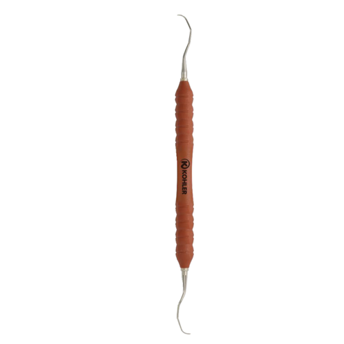 Starkt böjd. Designad för att nå distala ytor av alla posteriora tänder med minimal utspänd intilliggande mjukvävnad. Vid dessa svåråtkomliga ställen, kan spetsarna användas till att dubbelkontrollera arbetet i dess motsats genom att variera graden något av bladytans placering.• Stabila med låg vikt • Ger mycket bra grepp • HygieniskaDe extremt vassa spetsarna underlättar exakt subgingival borttagning.