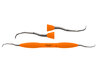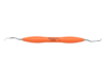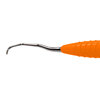 Dubbeländad finisheringscurette av rostfritt stål för avlägsnande av djup subgingival tandsten och finishering av subgingivala rotytor på mesialytor hos molarer. Har grövre och styvare hals samt något bredare arbetsdel än Gracey 11-12. Ergonomiskt oranget silikonhandtag, Ø 12 mm.
