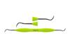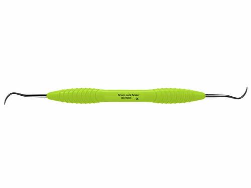 Dubbeländad universalscaler med dubbelsidiga långa och tunna arbetsdelar för bästa åtkomst approximalt. För alla tandytor såväl mesialt och distalt som buccalt och lingualt. Den idealiska vinklingen gör att instrumentet kan användas både anteriort som posteriort. Ergonomiskt oranget silikonhandtag, Ø 12 mm.