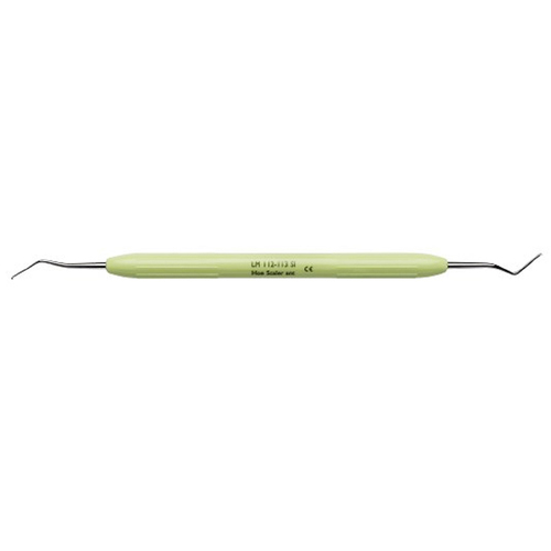 Dubbeländat hakinstrument för avlägsnande av supragingival och subgingival tandsten. Lämplig för djupa trånga tandfickor och konkava rotytor. För både vertikal och horisontal teknik. För anteriora labiala och linguala ytor. Fungerar även bra för retroklinerade incisiver i underkäken.