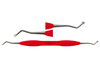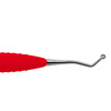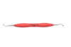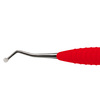 Dubbeländad exkavator med rund arbetsdel för att avlägsna debris och karies i kaviteter samt att avlägsna mjukt karierat dentin och provisoriska fyllningar. Ergonomiskt rött silikonhandtag, Ø 12 mm. Storlek: 2,5 mm