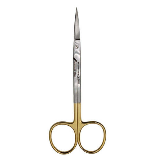 Sutur och tandköttssax i rostfritt stål, med hårdmetallinlägg.